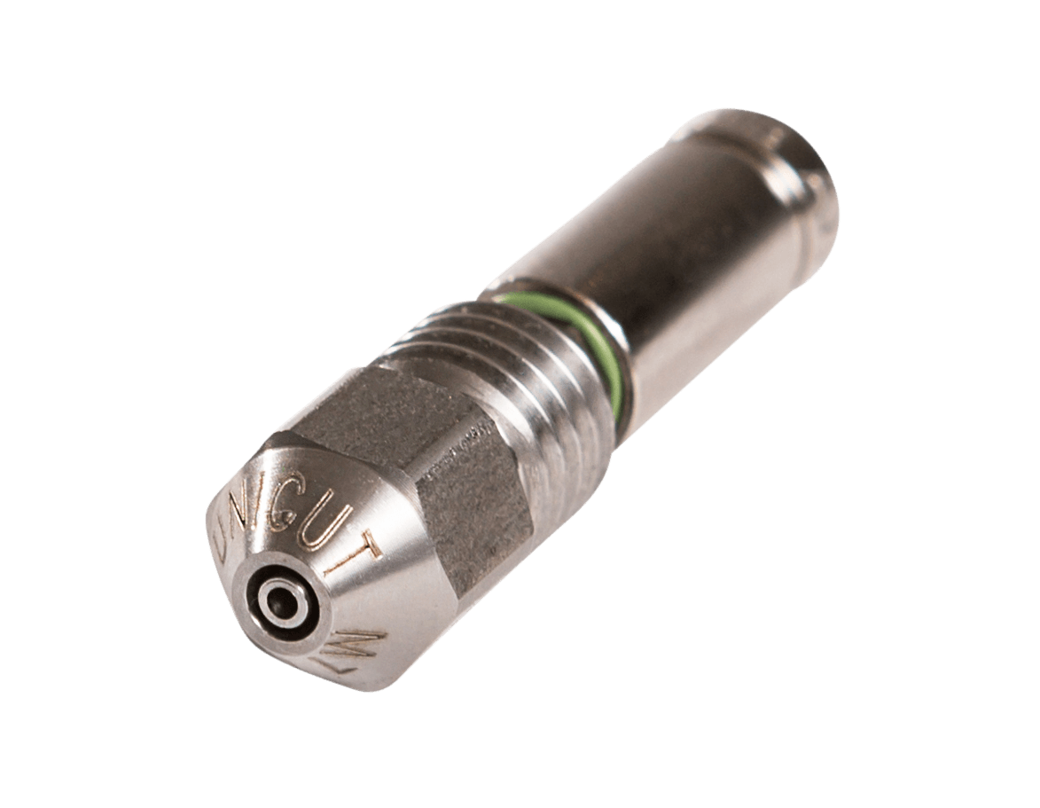 Die UNICUT® Düsen sind präzise und robust zugleich. Gefertigt aus Edelstahl sind sie widerstandsfähig gegen Späneflug und mechanische Beanspruchung. Bei den UNICUT® Vollkegeldüsen handelt es sich um Zweiphasendüsen mit getrennter Luft- und Fluidführung. Auf Grund der druckdichten Verbindung der Düse mit der Fluidleitung, treffen Luft und Fluid erst beim Austritt aus der Düse zusammen, was ein sehr präzises und nebelarmes Sprühen ermöglicht. Ein weiterer positiver Nebeneffekt dieser Verbindung ist, dass der Fluid- und Sprühluftdruck völlig unabhängig voneinander geregelt werden kann.